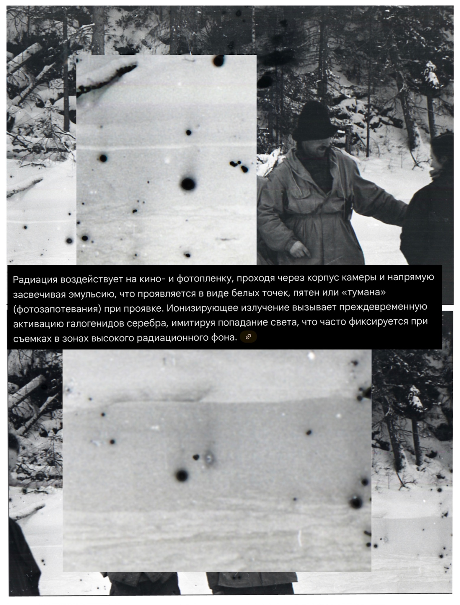 - На одном из «хвостов» на просвет с середины обрезка появились слабые следы негативного изображения, слишком тонкого, чтобы с него можно было напечатать фотографию, - рассказывает Андрей Сафонов. - Но если рассматривать такой негатив на темном фоне со стороны эмульсии, изображение волшебным образом превращается в позитив. Для начала мы состыковали этот «хвост» с походными пленками туристов и выяснили, что он от пленки Игоря Дятлова, финальным кадром которой считался тот, на котором Зина занимается шитьем на фоне окна.
