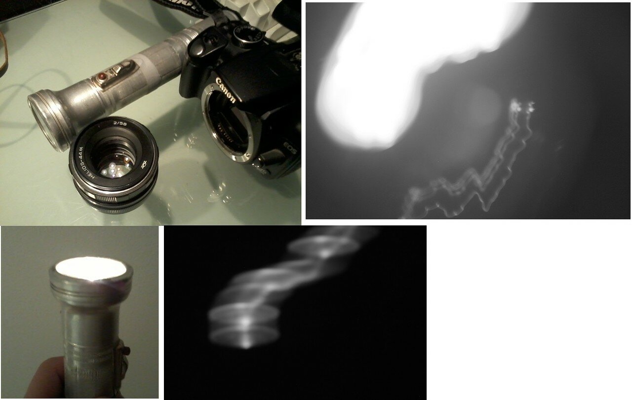 Я не пойму, что вы хотите выяснить. На фото ZSM над ним поставил 5, источник света в виде окна, и никуда не двигается, он однороден, только края размазаны, что нормально при задвинутом. На 34 источник смазан не только от не выдвинутости, но и от шевелёнки, в виде движения его самого, или движения аппарата.