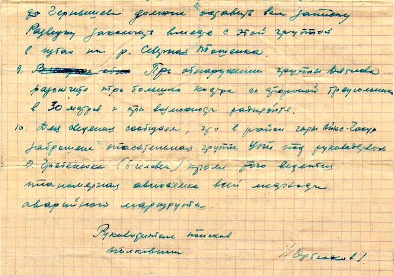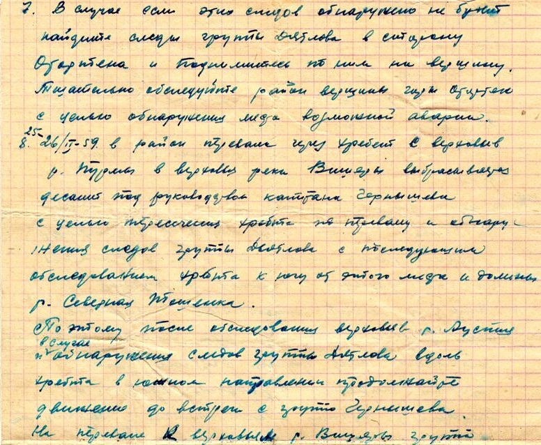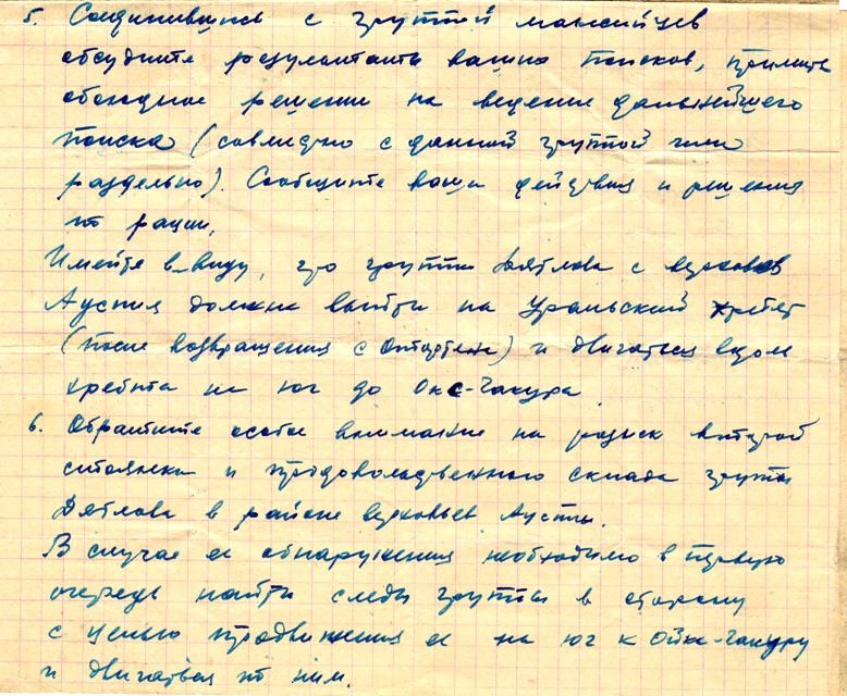 Когда мы доставали тела ребят, у Золотарева в одной руке была записная книжка, а в другой - карандаш. Ортюков как сумасшедший бросился к ней, а потом резко сник, ничего не обнаружив, только произнёс "Ничего не написал, слюнтяй". Дорогой полковник, если ты слышишь меня на том свете, а что бы ты написал, пробыв на 30-ти градусном морозе минимум 6 часов... Почему А. Золотарёв держал в руках записную книжку и карандаш и ничего не записал, можно только гадать. Наверно, было не до этого, да и руки были уже по локоть отморожены.