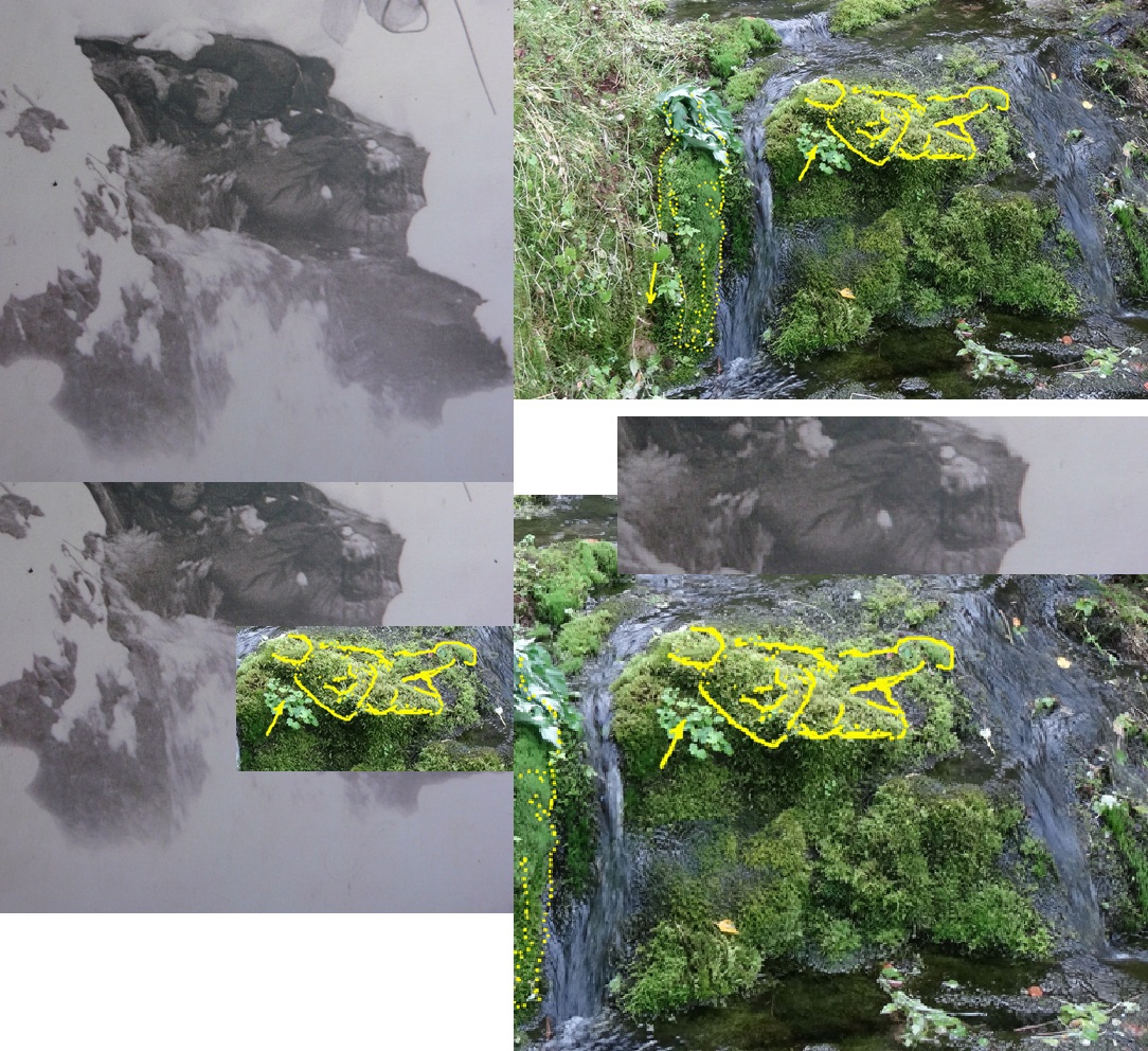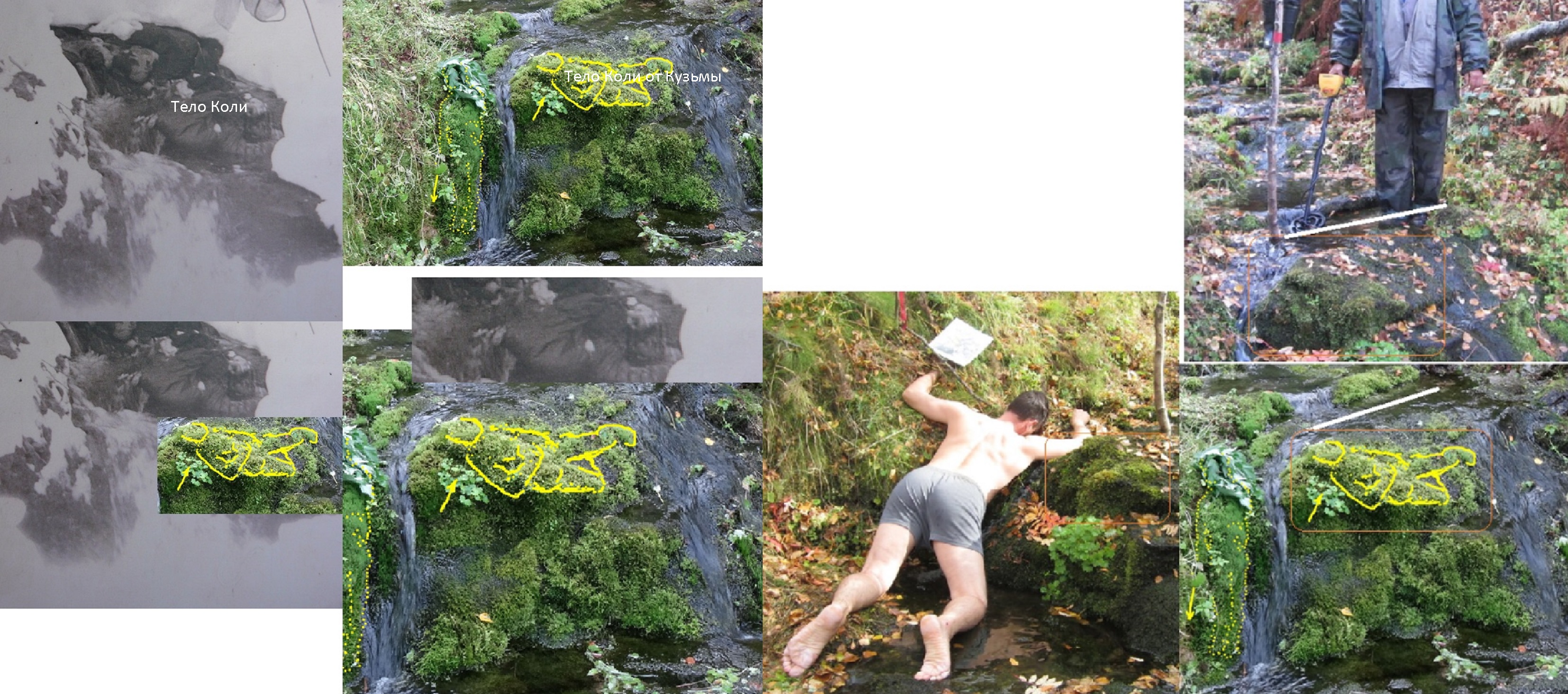 В общем эти последние несоответствия в деталях положения тела искать не имеет смысла, пока не будет понятно, что тело лежит именно на уступе Рокотяна, в строгом соответствии относительно головчатого камня, а вместе с ним и всего совпадающего видимого фона.