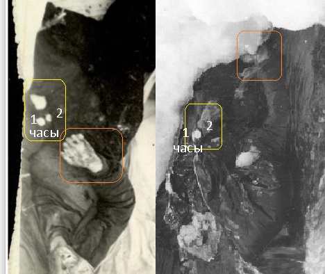 одинаковом масштабе. Так сказать, уточнить то, что у меня нарисовано без уточнения того, что не значимо для определения положения головы как по УД, так и по воспоминанию Аскинадзи и, вполне вероятно, по фотке начала раскопа Люды, где, похоже, сфоткана именно обнажившаяся из-под снега голова Тибо, как оно было и в воспоминании Аскинадзи.