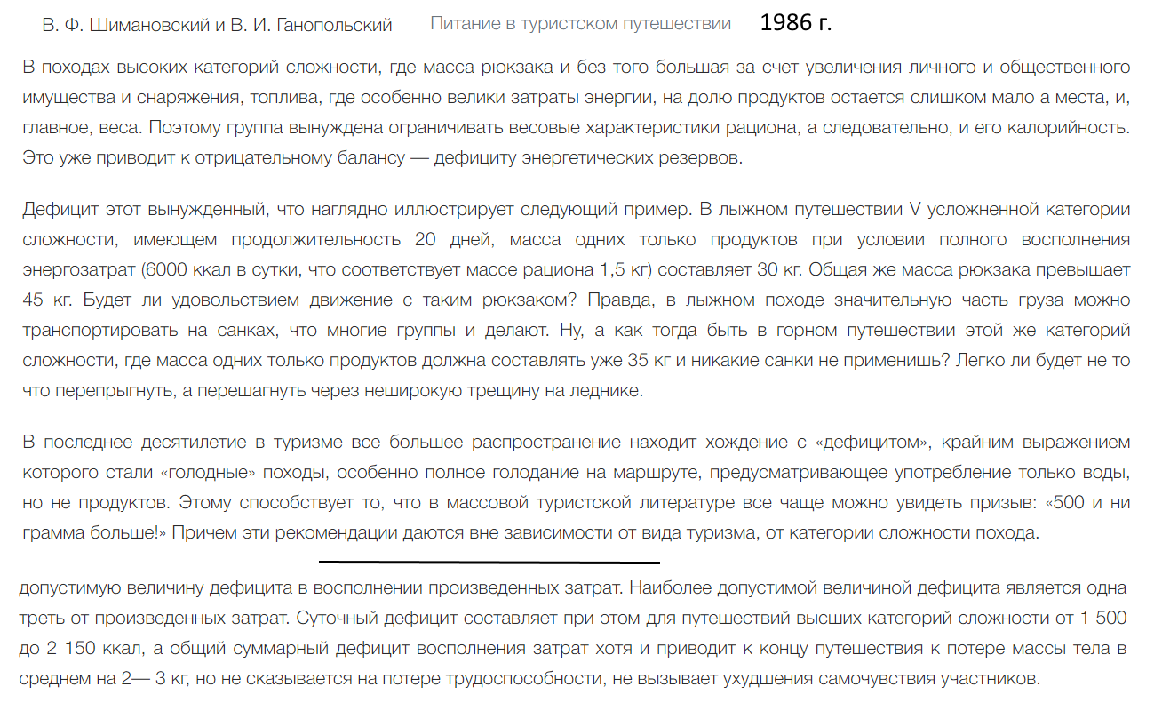 Вот именно не надо. И она именно от вас. Я вам привожу факты, что постоянно старались уменьшить груз продуктов. И это реально получилось. А у вас, с каждым годом всё больше инвалидов в походах, которые ради здоровья, не хотят лишний пяток груза тащить.